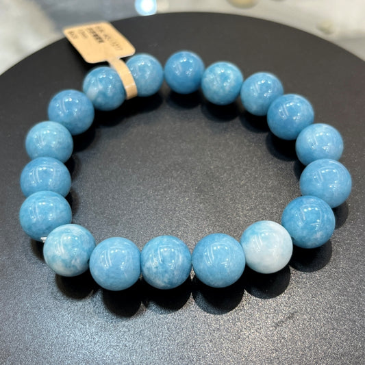 Brazilian Aquamarine Crystal Beaded Bracelet - A Grade - 8mm Beads