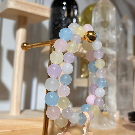 Indian Topaz|Aquamarine|Rose Quartz Crystal Beaded Bracelet - 8mm Beads