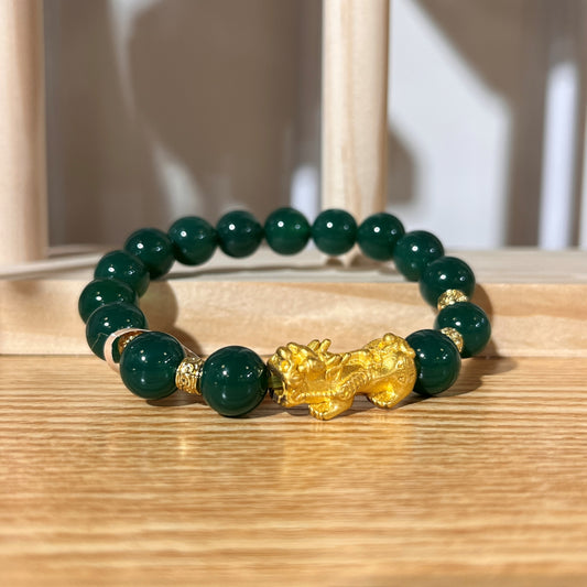 Green Agate|Golden Pixu Crystal Beaded Feng Shui Bracelet - 10mm Beads