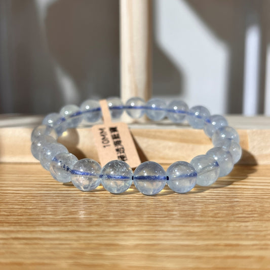 Brazilian Aquamarine Crystal Beaded Bracelet - A Grade - 8mm Beads