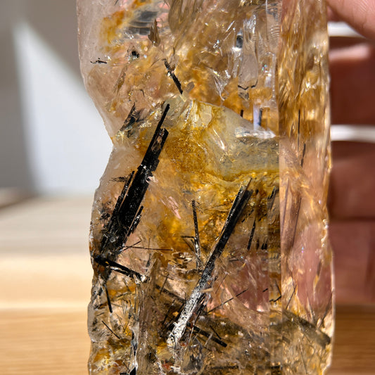 Black Silver Rutile in Quartz Freefrom - Half Polished