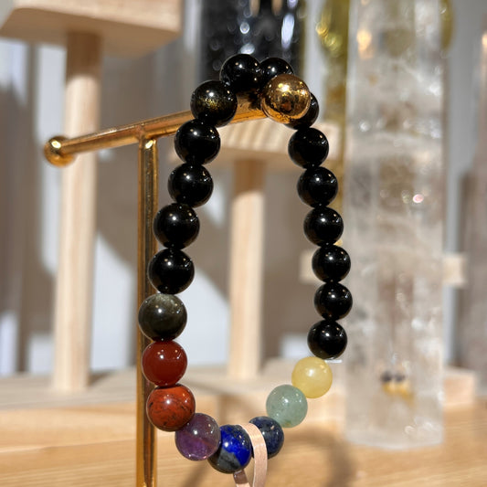 Indian Golden Sheen Obsidian|Seven Chakras Crystal Beaded Bracelet