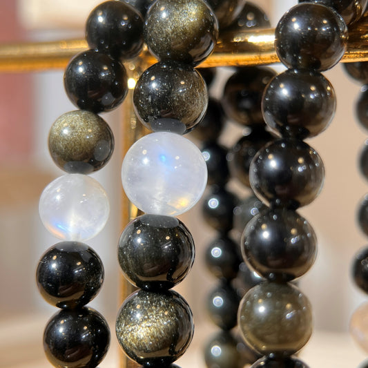 Brazilian Golden Sheen Obsidian︱Moon Stone Crystal Beaded Bracelet